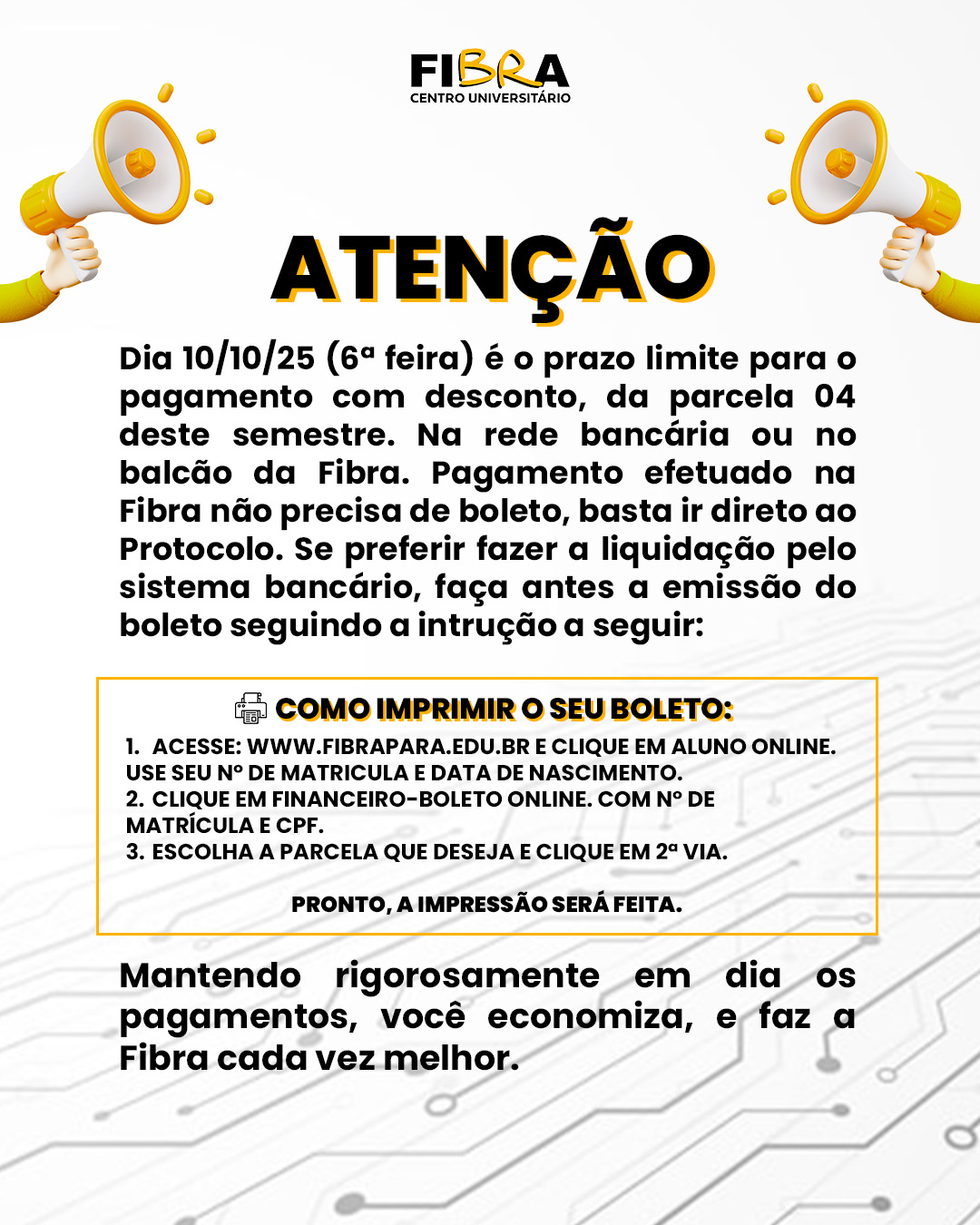 Desconto pontualidade - parcela 04 por Coordenadora do NEAD - JANAINA COSTA . - quarta-feira, 1 out. 2025, 18:30 Número de respostas: 0 Link direto